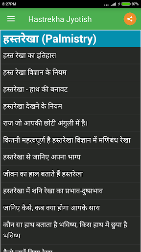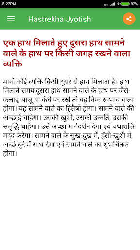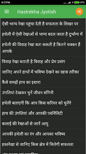 Hast Rekha Shastra in Hindi .App is based on hindi language. Very good application to learn and understand past/present and future. Really high quality literature on Hastrekha