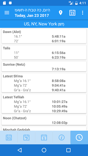 * Fixed (Hebrew) Zmanim Screen