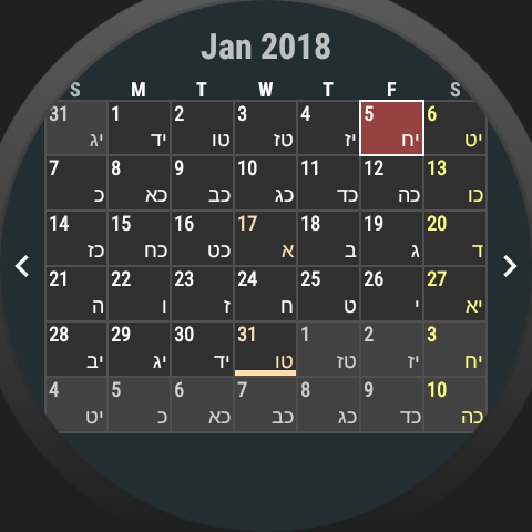 وجهات النظر الشهر الكامل للتقويم العبري والعلماني.يمكنك عرض أي تاريخ منذ إنشاء.