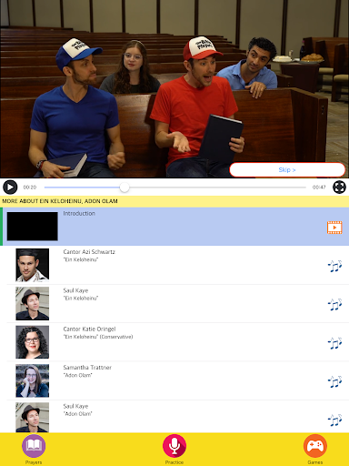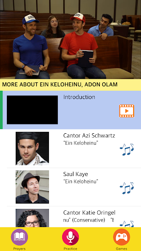 • Music and Videos: A traditional melody plus 3-4 interpretations of the prayer. Music in the series comes from more than 50 of today’s top Jewish musicians. Videos explain the meaning of the prayer, hosted by Jewish educators Noah Aronson, Eliana Light, and the Bible Players.