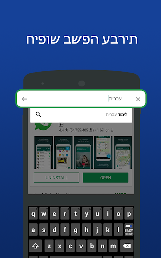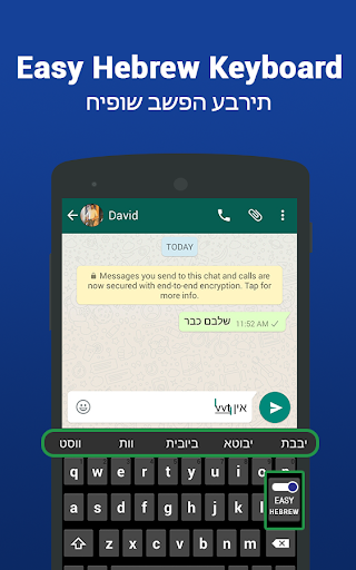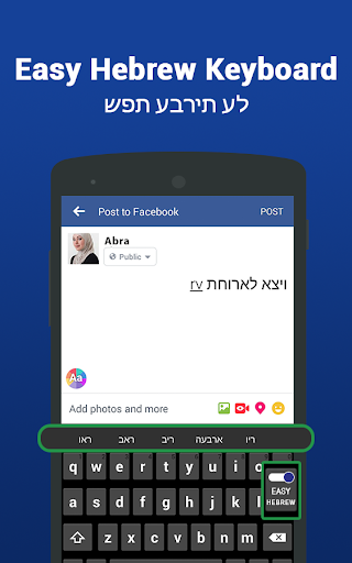 This تطبيق لوحة مفاتيح الكتابة العبرية Easy هو لأولئك الذين يرغبون في كتابة لغتهم الخاصة من خلال لوحة المفاتيح العبرية الافتراضية. الآن يمكنك الدردشة على وسائل التواصل الاجتماعي، أنت فقط تكتب باللغة الإنجليزية الرومانية ولوحة المفاتيح العبرية السهلة والإنجليزية إلى لوحة المفاتيح العبرية التي تغيرها في المدخلات العبرية.