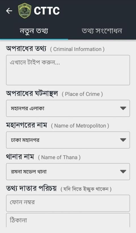 مكافحة الإرهاب وحدة مكافحة الجريمة عبر الوطنية (CT) هو وحدة متخصصة افتتح حديثا في دكا شرطة متروبوليتان للشرطة بنغلاديش. من أنشطة يائسة جدا البدء في وحدة بدأت ضد الإرهاب، والتطرف، والجريمة السيبرانية والجريمة العابرة للحدود الوطنية، قنبلة / المتفجرات / الأسلحة وغيرها من المعايير لمكافحة الإرهاب. أطلقت وحدة طلبا رسميا المحمول للمواطن والوافدين وجميع المجالات من الناس الذين يرغبون في تقديم المعلومات الاستخباراتية أو يريدون التواصل / تعاون القوة للبقاء خطوة واحدة إلى الأمام من المسلحين. تحميل انه تطبيقات الهاتف المتحرك على الهاتف الخليوي الخاص بك ونشاطركم وجهات النظر / معلومات / الرأي إلى CT.