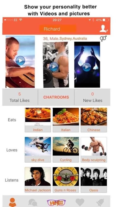 كما يسمح HBHG لك لإضافة الصور لتمثيل مصالحكم في الموسيقى والغذاء والنشاط.