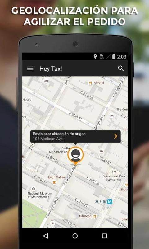 1. Hey Tax! localiza tu posición actual automáticamente.