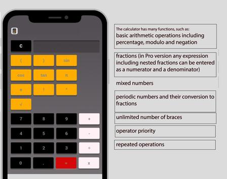 - fractions (in Pro version any expression including nested fractions can be entered as a numerator and a denominator);