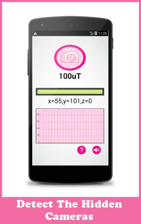 الكاميرا الخفية للكشف عن بالاضافة الى التطبيق هو بسيط للاستخدام، فقط فتحه وتحريكه حول الكائنات غير موثوق بها. إذا ارتفعت قيم الحقول المغناطيسية هناك كاميرا خفية في المنطقة. دقة التطبيق تعتمد كليا على أجهزة الاستشعار المغناطيسي في جهازك وتتأثر المعدات الكهربائية مثل أجهزة التلفزيون وأجهزة الكمبيوتر ... بسبب الموجات الكهرومغناطيسية.
