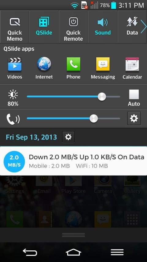 خدمة الإنترنت عالي السرعة يعرض سرعة الإنترنت لديك في شريط الحالة ويظهر كمية البيانات المستخدمة في الجزء الإخطار.