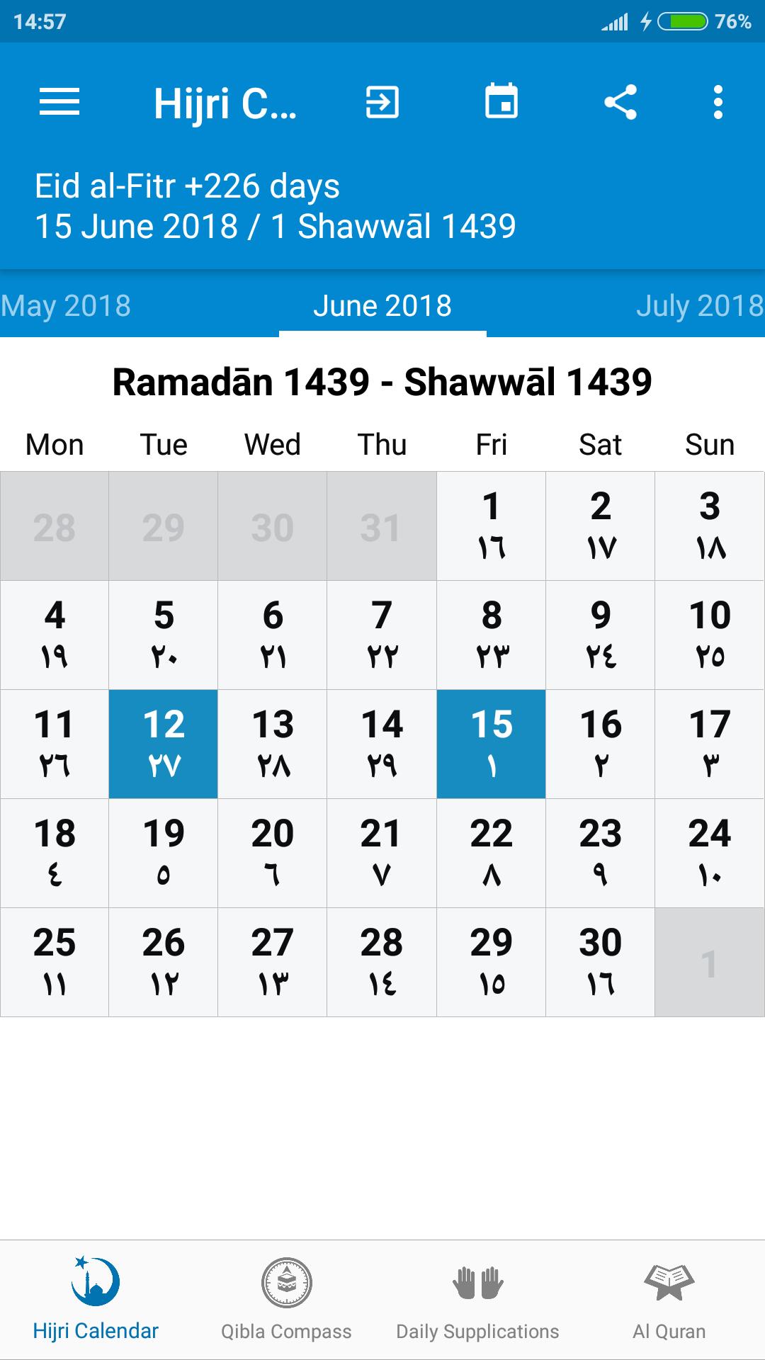 - View current Islamic & Gregorian Calendar dates.