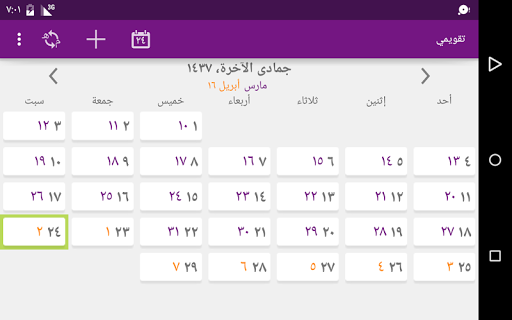 تطبيق للتقويم الهجري متزامن مع تقويم أم القرى (التقويم الورقي -الرزنامة-).