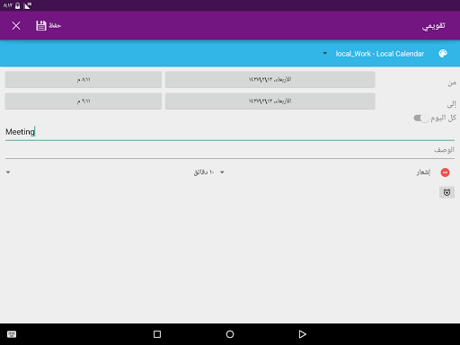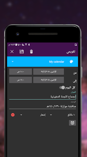 ★ إمكانية إضافة 'تذكير' بالإشعار أو بالبريد الإلكتروني عند إضافة أحداث جديدة.