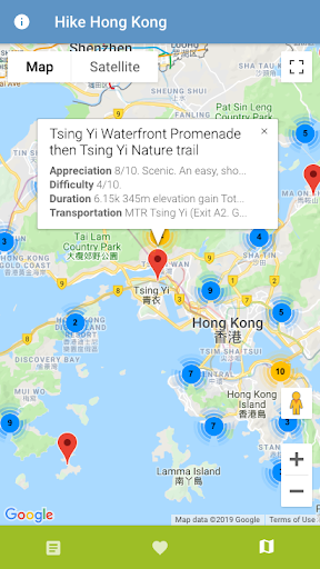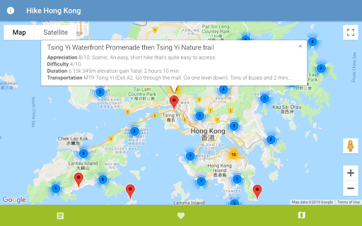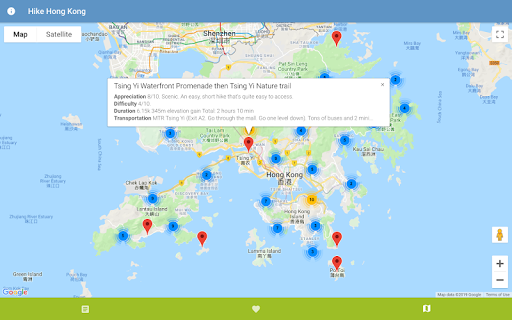 - View hikes on a map of Hong Kong