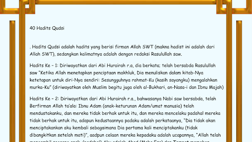 وبعدالحديث القدسي هو الحديث الذي يحتوي على كلمة الله SWT (معنى هذا الحديث من الله SWT)، في حين أن الجملة هي الحد من رسول الله.