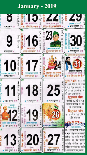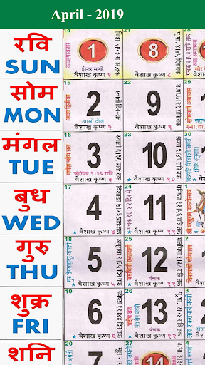 هندي Panchangam في الهندية وفقا لذلك، فارام، ثيدي، ناكشاثرامستكون الهندية Panchang متاحة باللغة الهندية Calendar 2019.