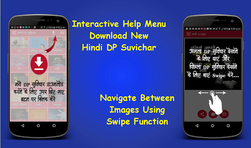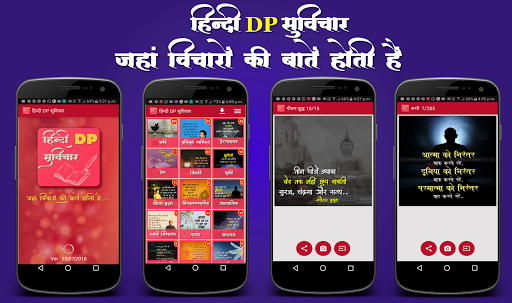 This app Contains Hindi DP Suvichar, Thoughts and Quotes Images for sharing to your friends. You can also use this app to set profile photo as as Suvichar Image for any social networking account. This app also provides regular updates of images to download.
