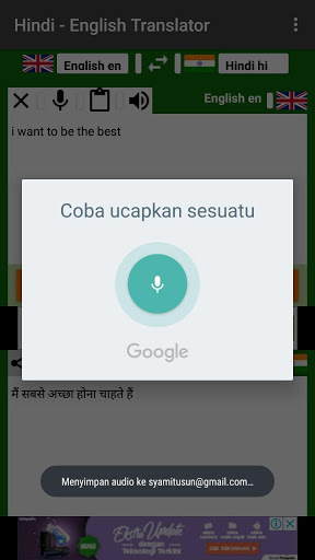 With this translator you can easily translate words and text from Hindi to English and from English to Hindi. You are able to translate words and even sentences, in just a split second.