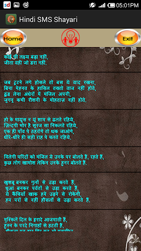 Now express and share your innermost feelings in your language - Hindi. Find the best Shayari app on Android and share it with your loved ones through social networking or instant messenger apps. Choose from among the best and most heartfelt shayaris and share with your loved ones with a single click.