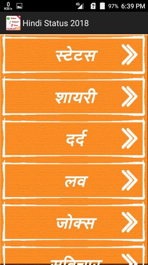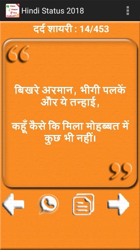 مع تطبيقات موبايل في تحديث 30,000+ مستحدمين يحملون Hindi Status 2018 احدث الاصدار مجانا كل أسبوع في انه يجعل التطبيق يشبه البضاعة الرائعة وهذا حلووه جدا في رأي..9Apps هذه التطبيق الحلوووه تصدر في 2017-10-08 سيطلق التطبيقات الكثيرة مؤخرا،يمكنك تحملها وتشاركها مع أصدقائك..