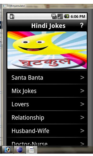Jokes are the best way to lighten up your mood anytime, no matter you are sad or stuck with work load. This application provides a collection of 10039;s of hilarious Hindi jokes to cheer you up. Navigation through the application is easy and very intuitive. Share and enjoy this collection of funny Hindi jokes with your family and friends. download the application to tickle your funny boneWith the Recent Release. Email Option Is Available. For Emailing Use the Android Hardware Menu Button and Email Option.