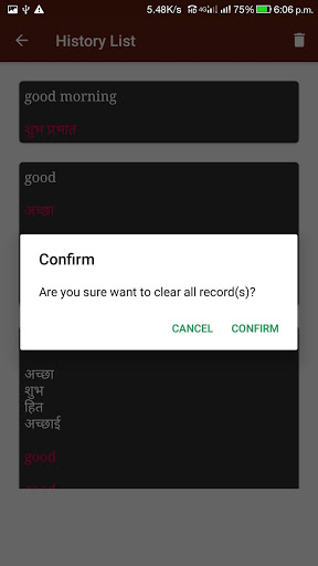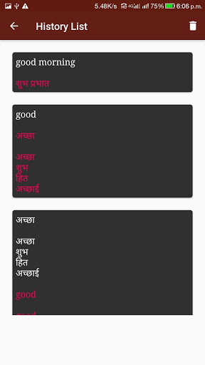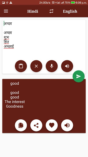 * App works in both mode, Hindi to English Translator or English to Hindi Translator.