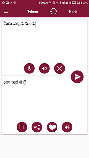 * التطبيق يعملفي كلا الوضعين، مترجم من الهندية إلى التيلجو أو مترجم من التيلجو إلى الهندية.