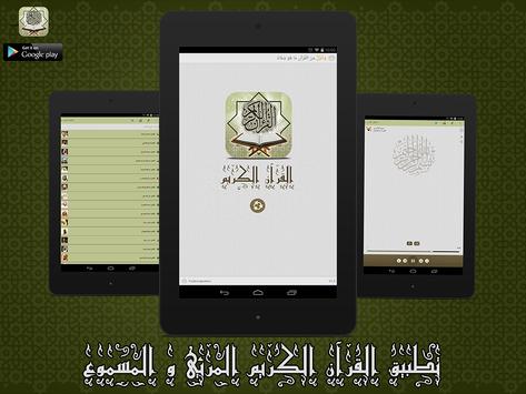 يمكنك تحميل المصحف كامل و الاستماع لتلاوات المقرئين المفضلين عندك مجانا و كذا تحميل اي سورة من المصحف في صيغة mp3 اوتنزيل القرآن الكريم مكتوب للقراءة ويعمل بدون انترنت.