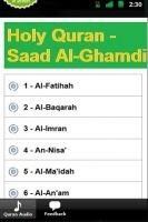 Listen to the Holy Quran audio - Saad Al-Ghamdi any time you want. Download this free app and you can have the holy Quran audio recited by Saad Al-Ghamdi with you all the time. The following Quran audio have been included in this app: Al-Fatihah Al-Baqarah Al-Imran An-Nisa' Al-Ma'idah Al-An'am Al-A'raf Al-Anfal At-Taubah Yunus Hood Yusuf Ar-Ra'd Ibrahim Al-Hijr An-Nahl Al-Isra Al-Kahf Maryam TaHa Al-Anbiya' Al-Hajj Al-Mu'minun An-Nur Al-Furqan Ash-Shu'ara' An-Naml Al-Qasas Al-'Ankabut ArRoom Luqman AsSajdah AlAhzab Saba' Fatir YaSin As-Saffat Sad Az-Zumar Ghafir Fussilat Ash-Shura Az-Zukhruf Ad-Dukhan Al-Jathiya Al-Ahqaf Muhammad Al-Fath Al-Hujurat Qaf Az-Zariyat At-Tur An-Najm Al-Qamar Ar-Rahman Al-Waqi'ah Al-Hadid Al-Mujadilah Al-Hashr Al-Mumtahinah As-Saff Al-Jumu'ah Al-Munafiqun At-Taghabun At-Talaq At-Tahrim Al-Mulk Al-Qalam Al-Haqqah Al-Ma'arij Nooh Al-Jinn Al-Muzzammil Al-Muddaththir Al-Qiyamah Al-Insan Al-Mursalat An-Naba' An-Nazi'at 'Abasa At-Takwir Al-Infitar Al-Mutaffifin Al-Inshiqaq Al-Buruj At-Tariq Al-A'la Al-Ghashiyah Al-Fajr Al-Balad Ash-Shams Al-Lail Ad-Duha Ash-Sharh At-Tin Al-'Alaq Al-Qadr Al-Baiyinah Az-Zalzalah Al-'Adiyat Al-Qari'ah At-Takathur Al-'Asr Al-Humazah Al-Fil Quraish Al-Ma'un Al-Kauthar Al-Kafirun An-Nasr Al-Masad Al-Ikhlas Al-Falaq An-Nas Download this free app and listen to the Quran audio now!