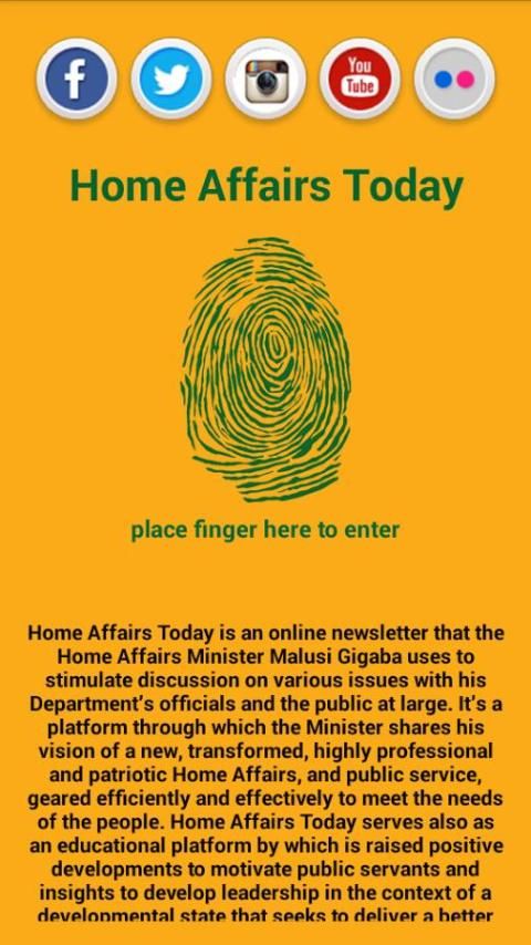الصفحة الرئيسية شؤون اليوم هو رسالة إخبارية على الإنترنت أن وزير الشؤون الداخلية Malusi Gigaba يستخدم لتحفيز النقاش حول مختلف القضايا مع المسؤولين في وزارة بلاده والجمهور بوجه عام. انها منصة من خلالها يشارك وزير رؤيته، والشؤون تحولت، درجة عالية من الاحتراف وطنية جديدة الصفحة الرئيسية، والخدمة العامة، موجهة بكفاءة وفعالية لتلبية احتياجات الشعب.