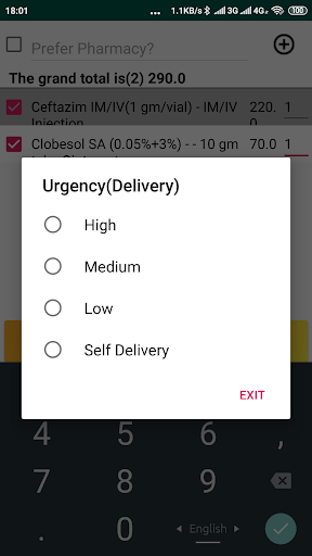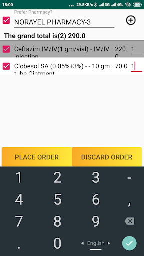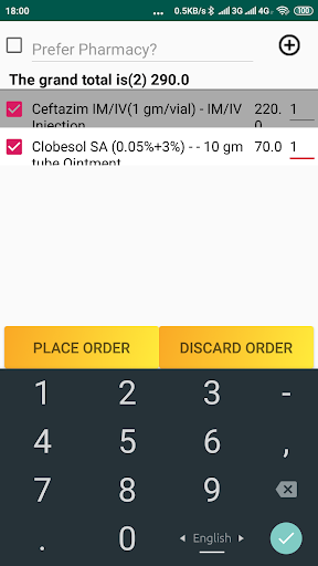 بعد تسجيل الدخول يمكنك طلب الطب في طريقتين. إذا تم تحديد الصيدلية يدويا، إذا تم تقديم الخصم بواسطة هذه الصيدلية، فستحصل عليه أم لا. 2. تلقائي، دون تحديد الصيدلية، في هذه الحالة، اعتمادا على السعر الإجمالي الخاص بك، ستترك الصيدلية طلب الصيدلية التي تعطي كل الخصومات، وسيتم طلب نفس السعر في صيدلية الموقع (المريض) أقرب موقع. هناك خياران للتسليم يمكنك أن تأخذ نفسك أو سوف يتحمل رجل التسليم (تطبق الرسوم). إذا كانت الصيدلة معروفة، فيمكنك الاستسلام دون تهمة.
