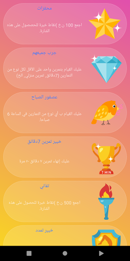 تحدى نفسك أكثر و احصل على شارات رائعة لتحفزك لتحقيق مستويات لياقة بدنية أعلى. اربح هذه الشارات الرائعة و شاركهم مع أصدقائك.