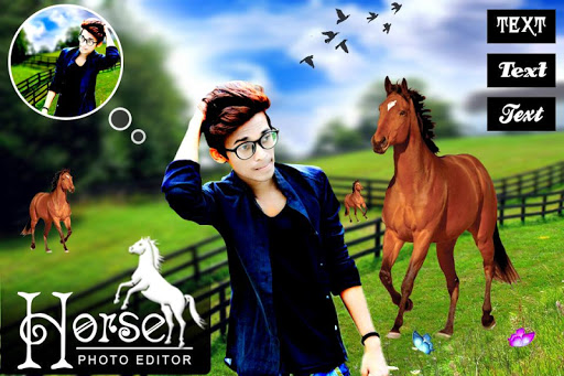 محرر صور الحصان - تحول تطبيق إطار الصور الحصان إلى إطار الصورة لتخصيص أو تزيين أفضل الموافقة المسبقة عن علم مع القدرة على إضافة نص أنيق ، لون النص في مختلف.