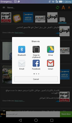 *يمكنك مشاركة الخبر مع اصدقائك من خلال برامجك المثبتة على الجهاز فيمكنك مشاركة اي خبر في رسالة نصية او على الفيسبوك Facebook او تويتر Twitter او سكاي بي الخ الخ و جميع برامج التواصل الاجتماعي بسهولة