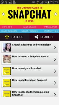 hidden tips & tricks. Choose and add friends from a list of thousands Snapchat users. The guide for Snapchat is easy to use.