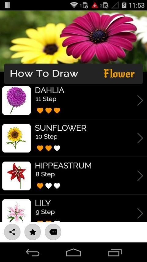 نحن تجميع جميع لدينا 19 الرسم دروس تصميم زهرة في لتطبيق واحد، لتجعل من السهل بالنسبة لك لاختيار ما رسم. فهيا واختيار، لأنه لا يهم ما اخترت لرسم، ويضمن لك لتحقيق أهدافك. وقتا ممتعا للجميع!