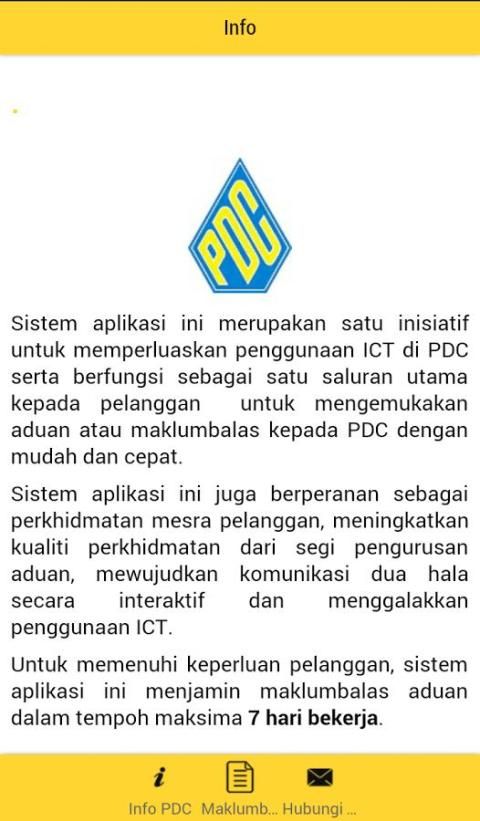 سيستم aplikasi رسائل كتبها هذا المؤلف merupakan ساتو inisiatif untuk memperluaskan penggunaan تكنولوجيا المعلومات والاتصالات دي PDC سيرتا berfungsi sebagai ساتو saluran أوتاما kepada pelanggan untuk mengemukakan aduan atau maklumbalas kepada PDC DENGAN mudah دان cepat.