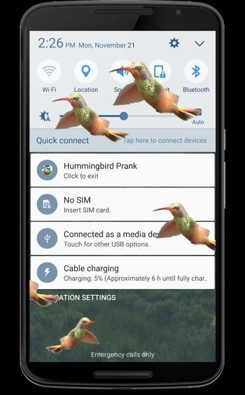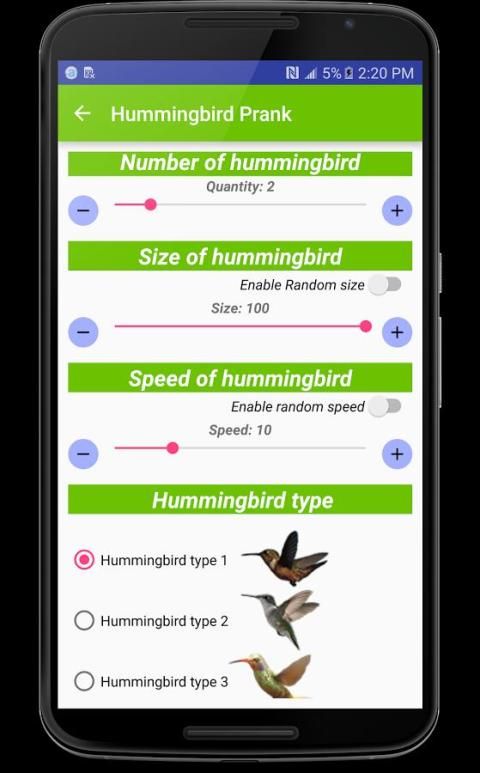 في هذا التطبيق، سترى الطنان يطير على شاشة هاتفك مهما كنت تستمع إلى الموسيقى، ولعب الألعاب أو تصفح الويب. سيكون من متعة لمزحة أصدقائك ودعونا نرى كيف تتفاعل عندما تطير الطيور نرى في جميع أنحاء الشاشة.