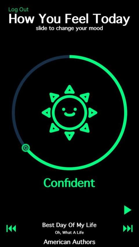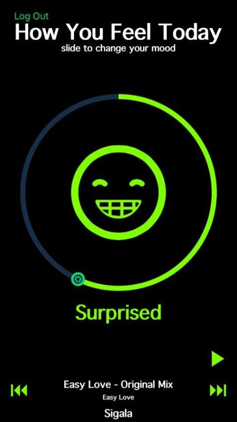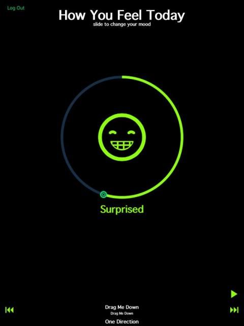 الآن يمكنك فقط حرك الدائرة ونحن سوف ابحث أغنية مثالية للشعور الحالي.