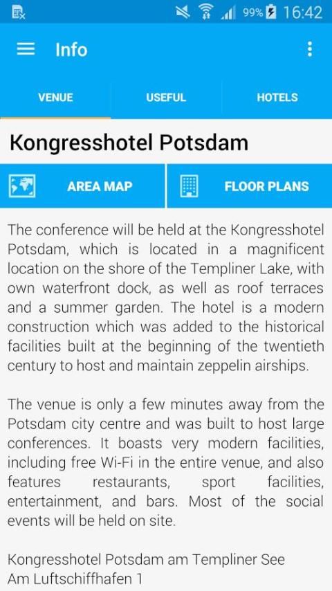 الوصول إلى خريطة للمكان وقاعات المؤتمرات.