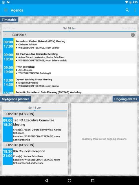 تحقق جدول أعمال المؤتمر كله، بما في ذلك جلسة أو اجتماع الوصف، والملخصات، روابط لعروض تقديمية، المؤلف من المعلومات، والمتكلمين، والمناسبات الاجتماعية، الخ