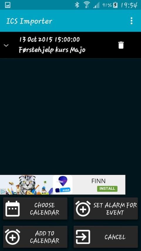 هذه الأحداث ICAL الاستيراد من ملفات ICS المخزنة على الهاتف إلى التقويم الروبوت.