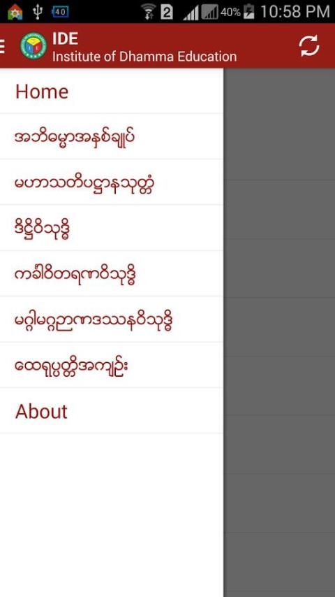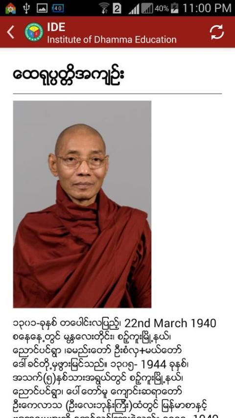 هذا التطبيق تليفون (IDE2013) هو للناس الذين يؤمنون بالبوذية وبالنسبة لأولئك الذين يرغبون في تعلم ل Dhamma بوذا. IDE يعني معهد مركز التعليم داما التي أسسها المكرم Sayartaw الدكتور أشين Nandamalabhivamsa بالقرب بيين أوو لوين، ماندالاي منطقة، اتحاد ميانمار. يشمل IDE 2013 تطبيقات داما دروس الدكتور أشين Nandamalabhivamsa. هذا وسوف تطبيقات تكون مفيدة جدا والمعرفة للجميع الذين يريدون أن يعيشوا بسلام والذهن. يتم عرض صوت شامل وواضح من داما الدروس والنصوص ومحاضرة الملاحظات أيضا أن تكون قادرة على التعلم بسرعة وسهولة. يتم عرض داما الدروس (الصوت والنص) مع ميانمار وبالي. نوصي بشدة لتحميل والاستماع.