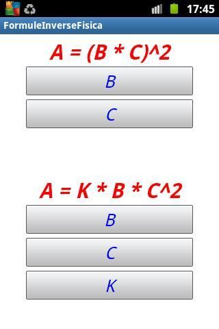 الضغط على أزرار B، C، K، وتطبيق يحصل على المجهولة بواسطة الصيغة المكتوبة أعلاه.