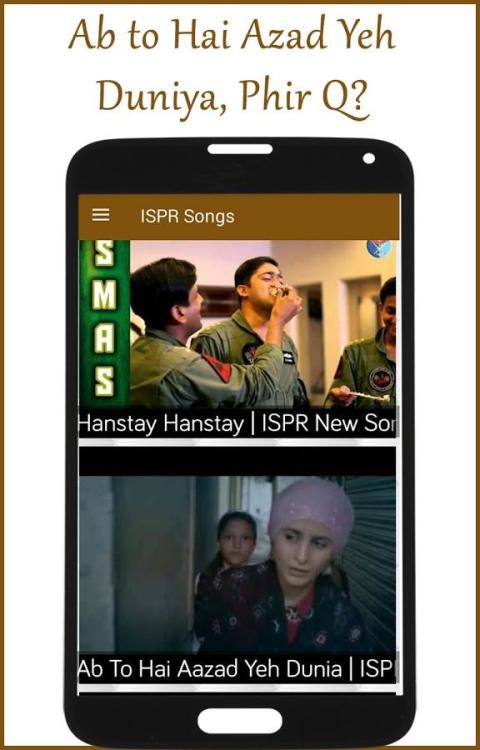 ISPR تشتهر الإفراج عن الأغاني الاحترار الوطنية والقلب للشعب الباكستاني والكشميري. هذا التطبيق ISPR كشمير كلمات هو أيضا مثال الذي يمكنك العثور على أحدث ISPR كلمات مخصصة لكشمير الناس أي أب لهاي آزاد يه دنيا، فير الرئيسية Kioon أزاد ناهي. الأغنية هي حساسة جدا وتحظى بشعبية كبيرة أغنية كشمير.
