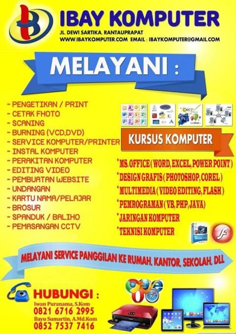 "Ibay الكمبيوتر" هي مؤسسة والتدريب على استخدام الحاسوب الدورات، والطباعة، وخدمة الكمبيوتر / كمبيوتر محمول، وشراء بيع أجهزة الكمبيوتر / كمبيوتر محمول، خدمات مواقع الإنترنت، خدمات تركيب الدوائر التلفزيونية المغلقة، دعوة طباعة، طباعة كتيب، لافتات طباعة، طباعة الصور الفوتوغرافية، دعوات طباعة وخدمات أخرى.