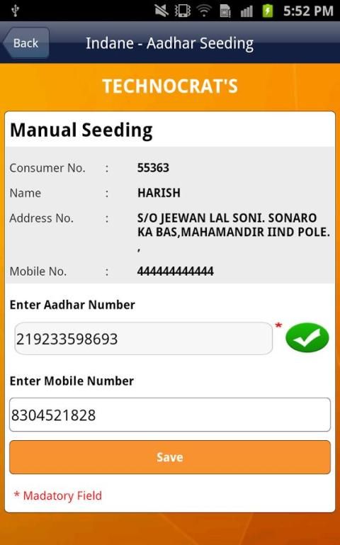 تم تطوير هذا التطبيق للموزعين IOCL لبذر مقالات Aadhaar بواسطة رمز الاستجابة السريعة ويدويا.