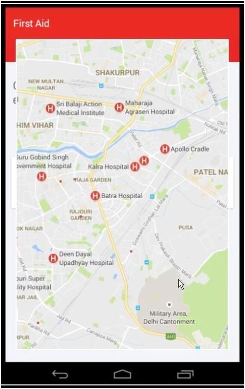 - عن طريق نقرة واحدة خريطة الوجل يمكن تحميلها لتحديد موقع المستشفيات القريبة والطرق للوصول إليهم (باستخدام نظام تحديد المواقع وظيفة خريطة جوجل).