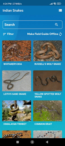-& gt ؛بنيت في الدليل الميداني الرقمي: يغطي 270 ثعابين موجودة في الهند مع صور عالية الجودة.