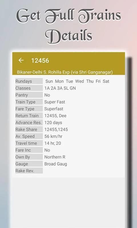 الهندي قطار سكة حديد هو أول تطبيق من نوعه لتوفير حالة القطارات والمعلومات في نفس التطبيق، وحتى الآن لا حاجة لتذكر أسماء محطة السكك الحديدية الهندية، جدول زمني أو أي معلومات أخرى، ومجرد استخدام هذا التطبيق وحل الاستفسارات الخاصة بك كما تريد.
