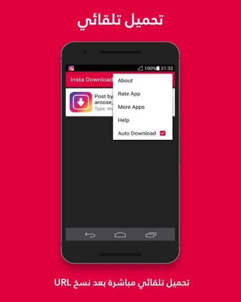 انستاداون يسمح لك بتحميل الصور والفيديوهات عن طريق روابط الانستغرام، بواسطة نسخ رابط الصورة او الفيديو بعدها يقوم تطبيق انستادون بلصق الرابط تلقائياً في قائمة التشغيل الخاصة بالتطبيق وبعد ذلك يمكنك التحميل يدويا أو تلقائيا الصور والفيديوهات.