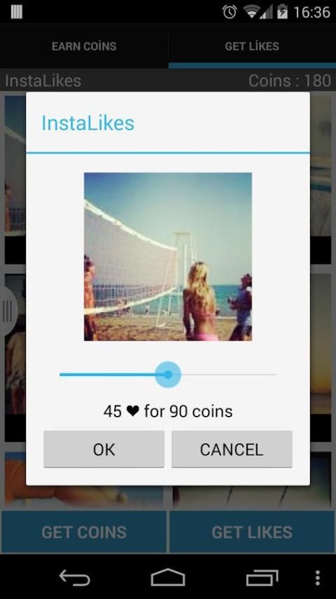 This is the easiest way to get more exposure for your Instagram photos. Simply like photos on Instagram from other Get Likes user to earn coins. Once you have coins you can spend them to get likes on the photos you choose. (2 coins = 1 like).