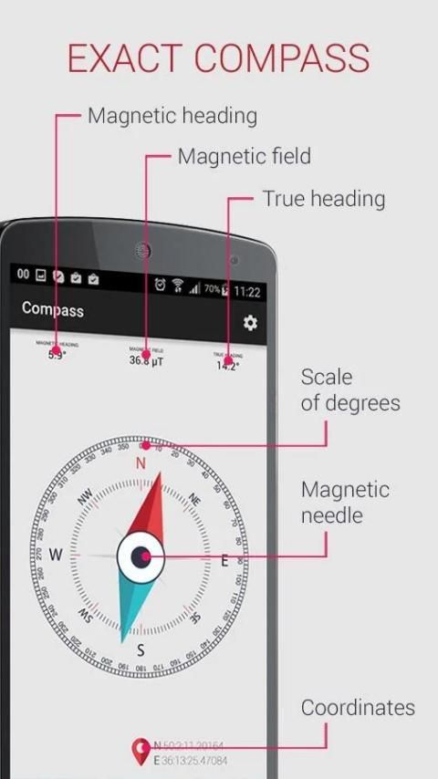 البوصلة هي بوصلة بسيطة وسهلة الاستخدام للمسافرين وأولئك الذين يحتاجون فقط للتنقل في أماكن غير مألوفة أو check الشمال والجنوب والشرق والغرب. تحميل هذه البوصلة مجانا.
